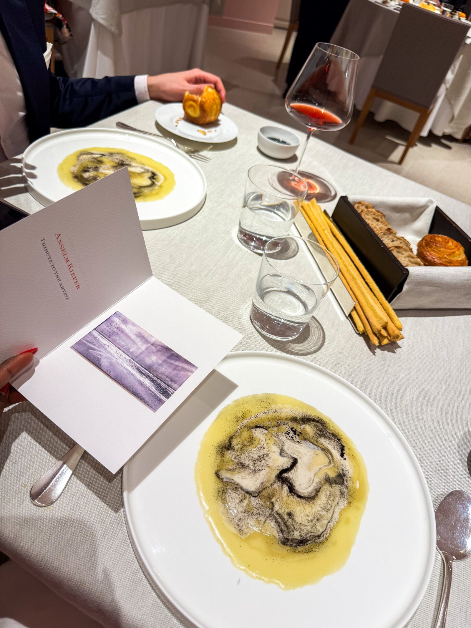Il menù? Ben costruito, con alcuni omaggi visivi che ricordano vere e proprie opere d’arte — trovate che ho apprezzato, soprattutto per l’intento creativo. Tuttavia, mi aspettavo una proposta più ancorata al territorio, rielaborata con rispetto e audacia.