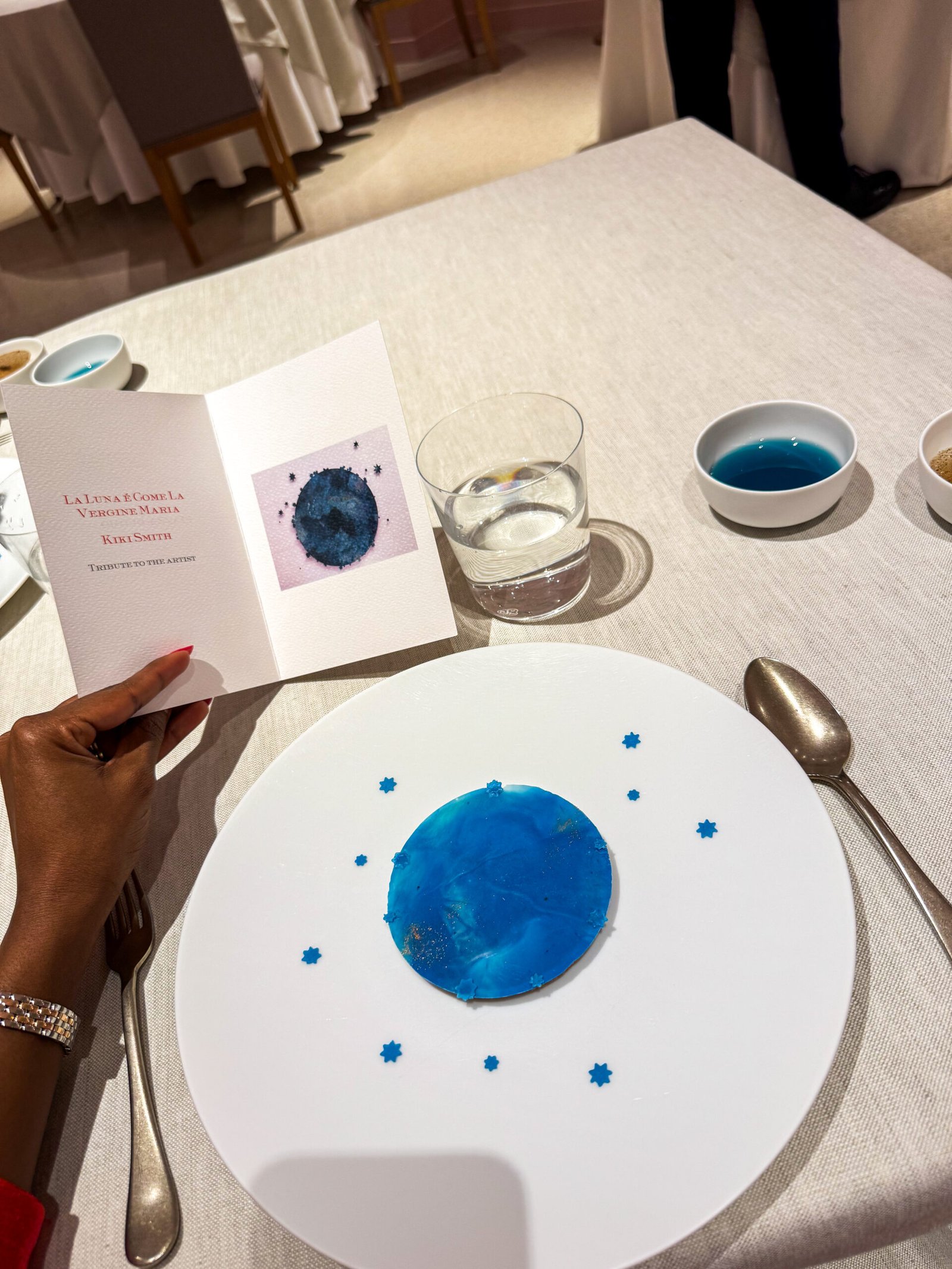 I dolci non mi hanno lasciato grandi emozioni, e la mise en place è forse l’aspetto che mi ha convinta meno: curata, sì, ma non sorprendente.